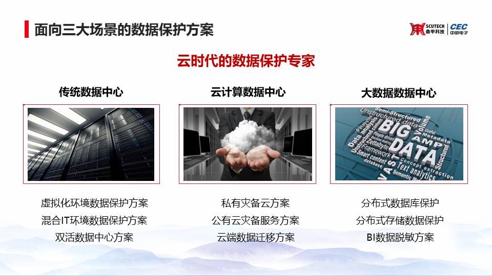 我們先來看看云時代數據保護的行業現狀與市場定位。相信這張圖片大家都非常熟悉了,鼎甲但凡要做市場的宣傳推廣,或是解讀我們的數據保護方案時,必展示的一張圖片。鼎甲主要面向傳統數據中心、云計算數據中心、大數據數據中心來提供相應的災備解決方案。我們重點是定位在云時代為客戶提供高效可靠的數據保護,這樣做是有原因的。