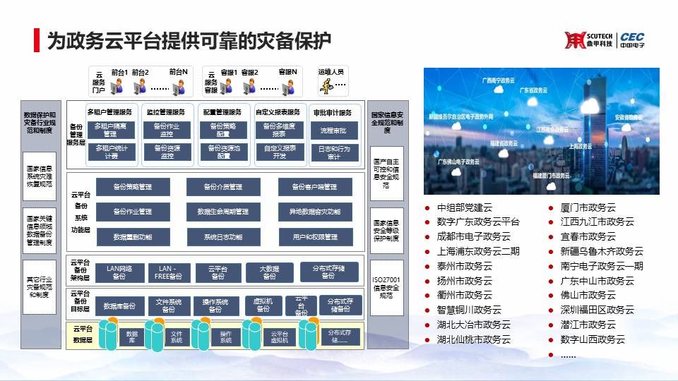 目前,鼎甲已服務于廣東省政務云、上海政務云、安徽省政務云、福建省政務云、福建廈門市政務云、廣西南寧政務云、江蘇南京政務云、新疆維吾爾自治區電子政務外網等眾多省市政府機構,成為政府機構數據保護的首選品牌。