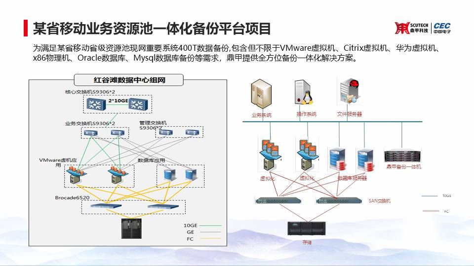 像某省電信的省級資源池的話,它包含不同的虛擬化平臺,我們鼎甲在這么多種云平臺底下,都能夠實現對所有數據的備份數據恢復和管理。