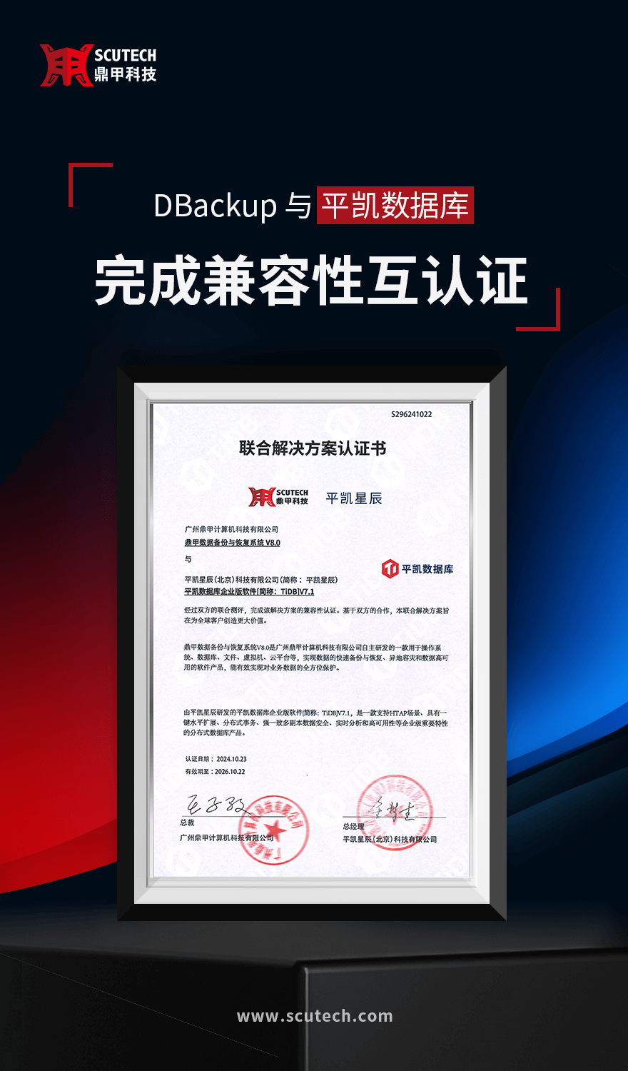 鼎甲與平凱星辰長期保持緊密合作關系,在數據庫備份與恢復領域持續探索與創新。鼎甲自主研發的 EOBS 對象存儲接口已成功適配 TiDB 最新版本,并通過兼容性認證,TiDB 用戶能夠便捷地享受鼎甲提供的高效、安全的數據保護方案。這種基于 S3 協議的流式備份技術無需額外軟件或本地緩存,即可實現快速備份和恢復,成為鼎甲災備方案的重要競爭優勢。